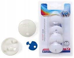 Praktyczne zabezpieczenie, które blokuje dziecku dostęp do gniazdek elektrycznych i skutecznie chroni je przed porażeniem prądem. Przystosowane są do gniazd standardowych i z bolcem. Można je w wygodny i szybki sposób założyć oraz zdjąć przy użyciu klucza, który znajduje się w opakowaniu. Produkt do wielokrotnego użytku. W opakowaniu 4 sztuki.