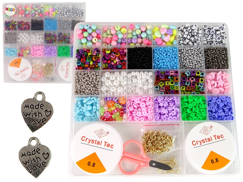 Duża zaletą jest to, że każdy z koralików ma swoje miejsce. W trakcie zabawy można utrzymać porządek. Dodatkowe akcesoria w postaci nożyczek oraz szpuli z elastyczną gumką sprawia, że mamy wszystko, co potrzebne.