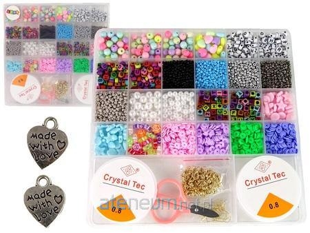 Zestaw zawiera wszystko co potrzeba do stworzenia biżuterii. Duży organizer ma 25 rodzajów koralików w różnych odcieniach różu, znajdą się tak perełki, spinki i różnego rodzaju zawieszki. Każdy znajdzie swoje ulubione!