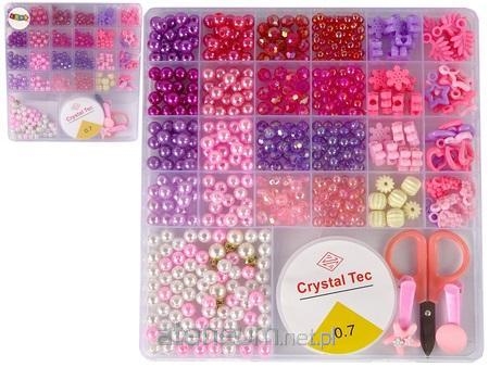 Zestaw zawiera wszystko co potrzeba do stworzenia biżuterii. Duży organizer ma 25 rodzai koralików w różnych odcieniach różu, znajdą się tak perełki, spinki i różnego rodzaju zawieszki. Każdy znajdzie swoje ulubione!