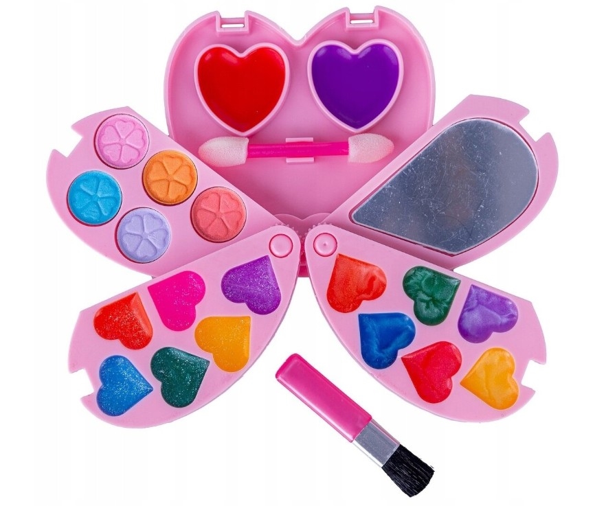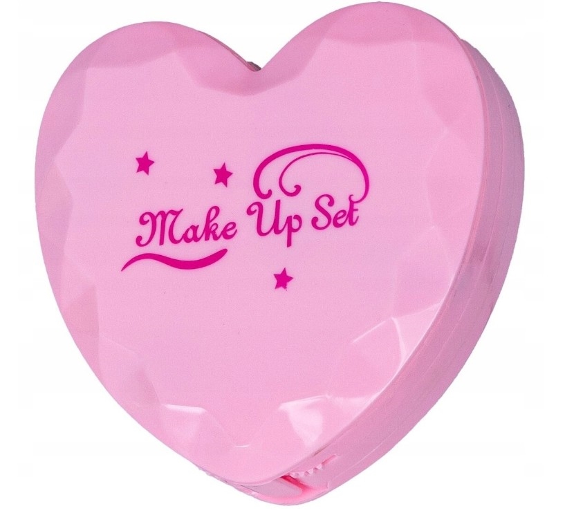 Pierwsze kroki w makijażu z kosmetykami dla małej księżniczki w formie rozkładanego serduszka w ulubionym, różowym kolorze.