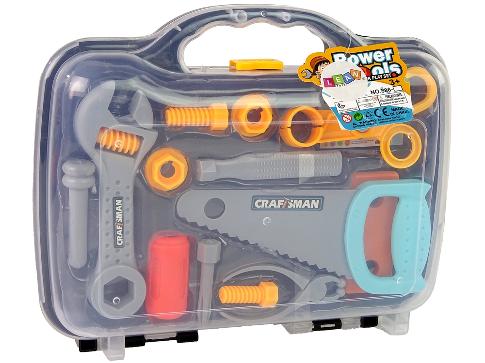 Narzędzia są wykonane z plastiku. Dzięki walizce, w którą są spakowane, zawsze po skończonej pracy będzie można schować je na swoim miejscu oraz bez problemu przenieść z miejsca na miejsce. W walizce znajdują się same najpotrzebniejsze narzędzia, które powinny być w każdym domu.