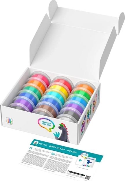 Zestaw Hey Clay zawiera 18 pojemników z miękką, kreatywną masą oraz kod dostępu do aplikacji dla zakupionej serii postaci. Kolory przedstawione na opakowaniu, pozwalają na stworzenie wszystkich 6 postaci z zestawu Mega dinozaury: Dimetrodon, Allosaurus, Therizinosaurus, Lagosuchus, Parasaurolophus I Ankylosaurus. Część masy pozostaje do ponownego wykorzystania, dzięki czemu można zrealizować swój własny kreatywny pomysł. Masa wysycha na powietrzu w przeciągu 24 godzin.