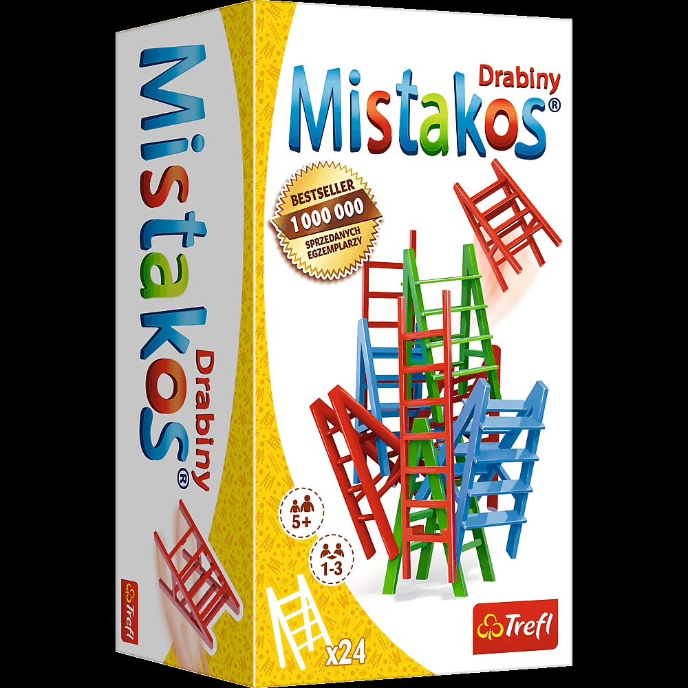 Nowa odsłona kultowej gry zręcznościowej Mistakos, tym razem z drabinami w roli głównej! Zdobądź jak najmniejszą liczbę punktów karnych lub jak najszybciej pozbądź się drabin w danym kolorze w trakcie ustawiania z nich wspólnej, imponującej konstrukcji.