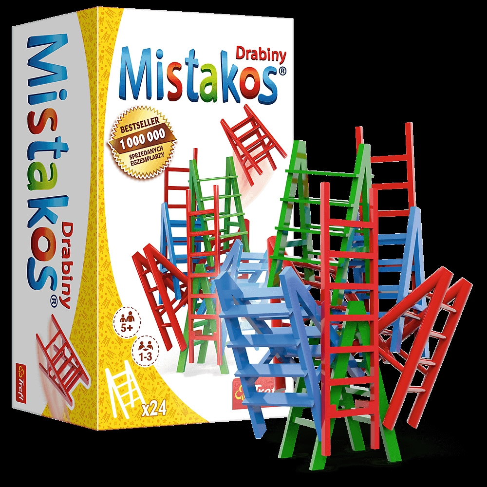 Dobra zabawa gwarantowana – teraz także w większym gronie! Pamiętaj, że gry z serii Mistakos możesz ze sobą łączyć. Graj krzesełkami i drabinami w jednym momencie i twórz jeszcze bardziej spektakularne konstrukcje!