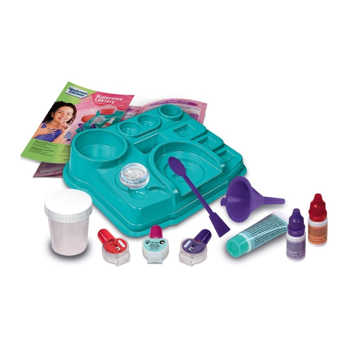 Zestaw zawiera akcesoria niezbędne do wykonywania doświadczeń. Instrukcja zawiera praktyczne informacje naukowe i wiele ciekawostek o zdobieniu paznokci!